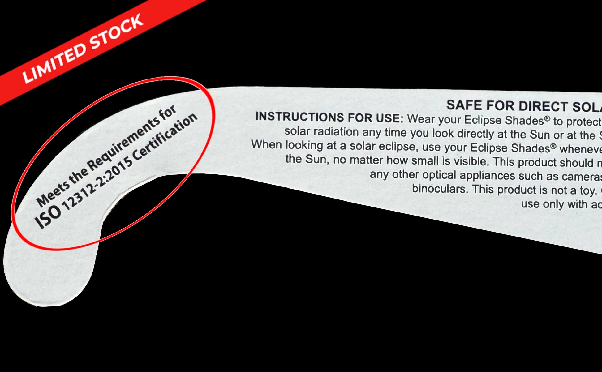 Para garantizar su seguridad, estas gafas han sido producidas bajo estrictos controles de calidad y rigurosamente probadas. Alternativas como gafas de sol, gafas caseras o gafas para eclipses falsificadas y baratas son extremadamente peligrosas ya que no bloquean suficientes rayos nocivos del sol.